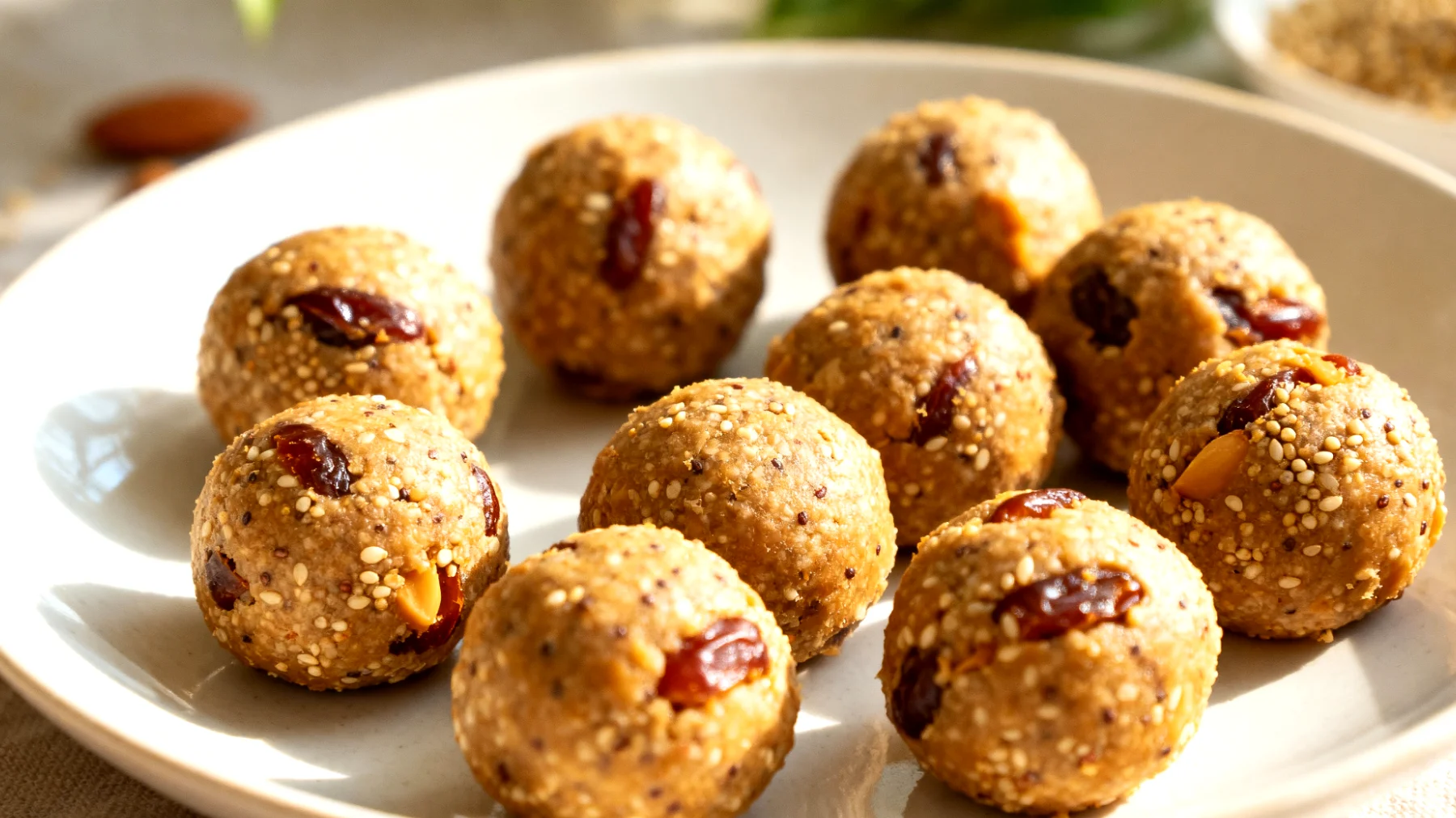 Datteln ergänzen dieses Konzept durch ihren natürlichen Fruchtzucker. Eine Medjool-Dattel enthält etwa 54 Gramm Kohlenhydrate, davon etwa 24 Gramm Glukose und 23 Gramm Fructose. Die enthaltene Glukose steht zwar schneller zur Verfügung, wird aber durch die Ballaststoffe der Dattel selbst sowie die anderen Zutaten im Energiebällchen abgepuffert. Das Ergebnis: Ein sanfter Energieschub ohne die Achterbahnfahrt des Blutzuckerspiegels.