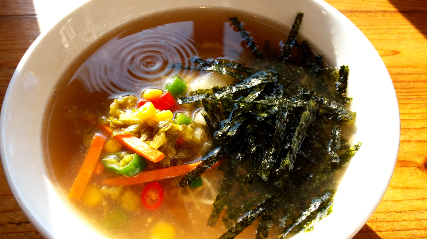 Die dunkelgrünen Wakame-Algen, die in der Suppe mitziehen, sind alles andere als reine Dekoration. Diese Meeresalgen liefern eine beeindruckende Palette an Mineralstoffen, insbesondere Magnesium und Kalium, die für die Muskelentspannung im Verdauungstrakt wichtig sind. Ihre löslichen Ballaststoffe wirken präbiotisch und dienen also den probiotischen Bakterien aus dem Miso als Nahrung, wodurch deren positive Wirkung verstärkt wird.